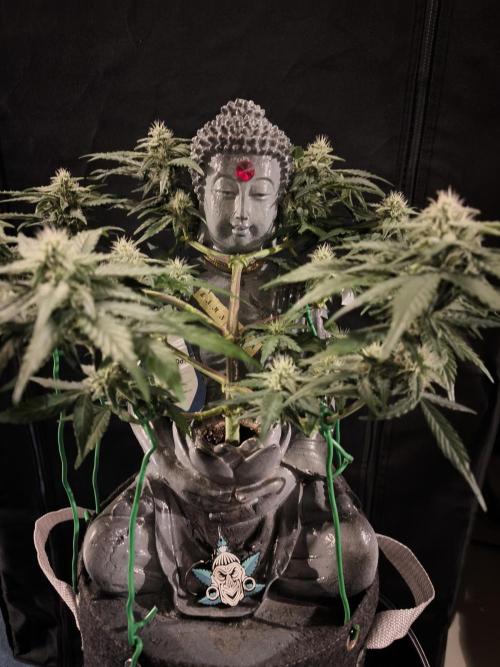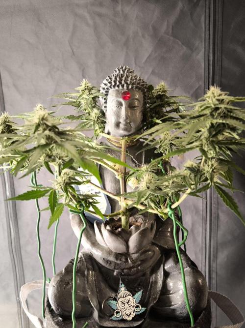 DevelGrow Hallo Freunde 👋 Do-Si-Dos F1 Auto von Zamnesia ist 35 Tage alt! Eine sehr schnelle und starker Strain! Der Plan ist gescheitert,die Pflanze um die Statue zu bekommen! F1 ist zu schnell dafür 😂😎👍 trotzdem habe ich noch versucht das Beste draus zu machen damit ein hübsches Gesamtbild entsteht! Bin sehr auf die Blüten gespannt! Keep Green and grow High ✌️🍀💙🍀