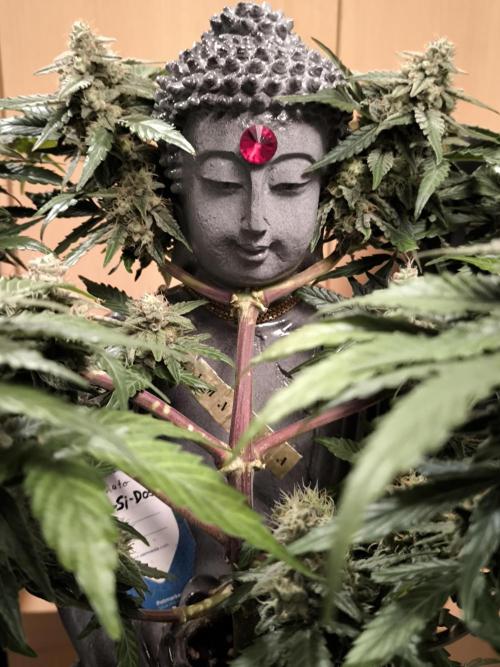 DevelGrow Hallo Freunde 👋 Do-Si-Dos F1 Auto von Zamnesia ist 35 Tage alt! Eine sehr schnelle und starker Strain! Der Plan ist gescheitert,die Pflanze um die Statue zu bekommen! F1 ist zu schnell dafür 😂😎👍 trotzdem habe ich noch versucht das Beste draus zu machen damit ein hübsches Gesamtbild entsteht! Bin sehr auf die Blüten gespannt! Keep Green and grow High ✌️🍀💙🍀