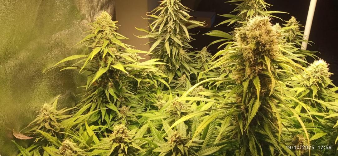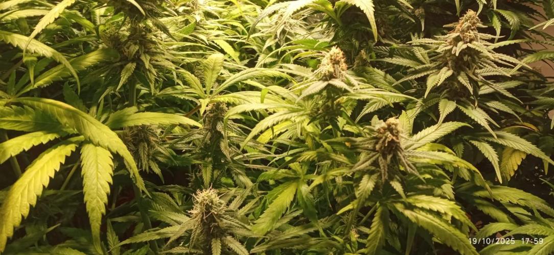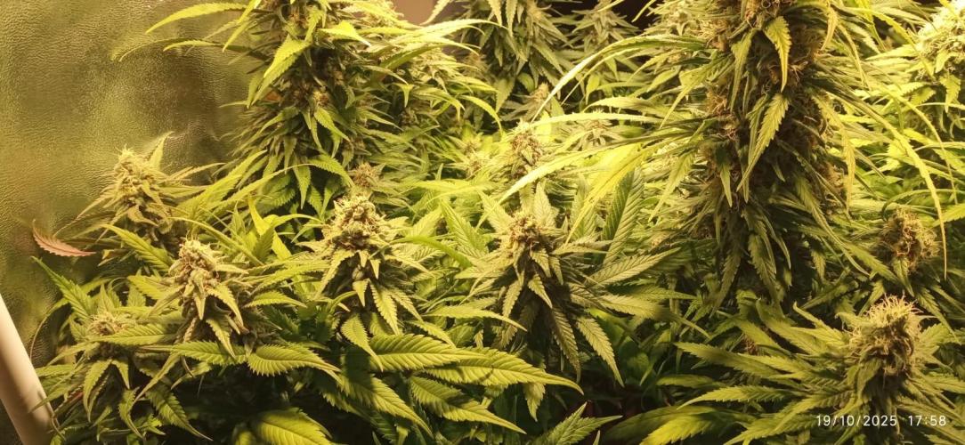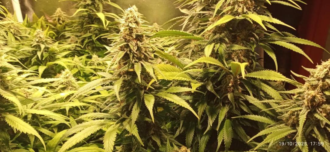 Si bien los cogollos principales estan bastante desarrollados, las flores satelitales están chicas y flacas. Con muchas hojas por eso en las fotos se ven grandes.