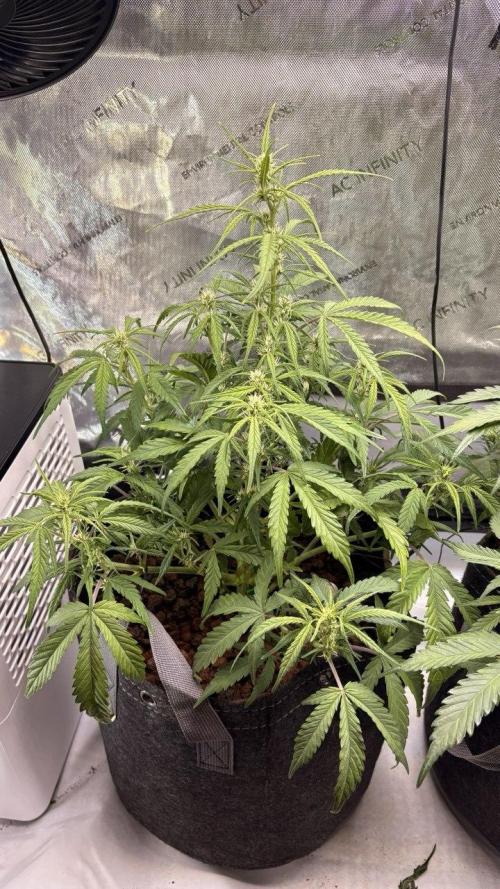 Royalts 15.09. – Beginn der neuen Woche: Pflanzen zeigen gesundes Wachstum, leicht hellere Blätter unten. LST vorbereitet, um Seitentriebe mehr Licht zu geben. 16.09. – Erste Reaktion auf LST: Seitentriebe sichtbar, Struktur verdichtet sich. Leichte Flecken auf unteren Blättern, oberes Wachstum kräftig. 17.09. – Kompakter Wuchs: Pflanzen werden buschiger, Blätter richten sich nach oben. Erste LST-Anpassungen durchgeführt. 18.09. – Kräftiger Zuwachs: Pflanzen wachsen gleichmäßig, neue Triebe in der Mitte. Untere Blätter beginnen leicht zu vergilben, oben vital. Licht konstant bei ~450 PPFD. 19.09. – Training wirkt: Deutlich mehr Seitentriebe sichtbar Pflanze reagiert sehr positiv. Blätter sattgrün, Struktur stabilisiert sich. 20.09. – Breiter Wuchs: Pflanzen nehmen mehr Platz ein, buschiger Aufbau. Untere Blätter schwächer, obere sehr kräftig. 21.09. – Dichte Struktur: Pflanzen füllen den Topfbereich weiter aus, viele frische Triebe. Klima und Licht unverändert, kein Stress erkennbar. 22.09. – Abschluss Woche: Deutliches Wachstum im Vergleich zur Vorwoche. LST erfolgreich, Pflanzen kompakt und vital. Lichtintensität bleibt bei ~450 PPFD.