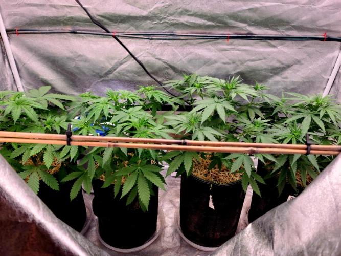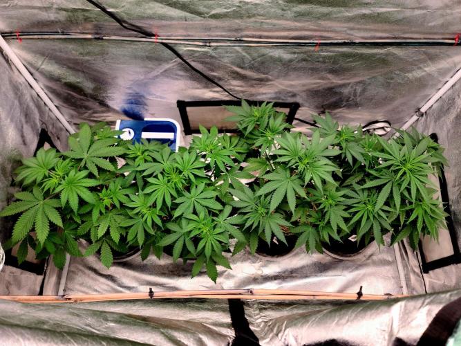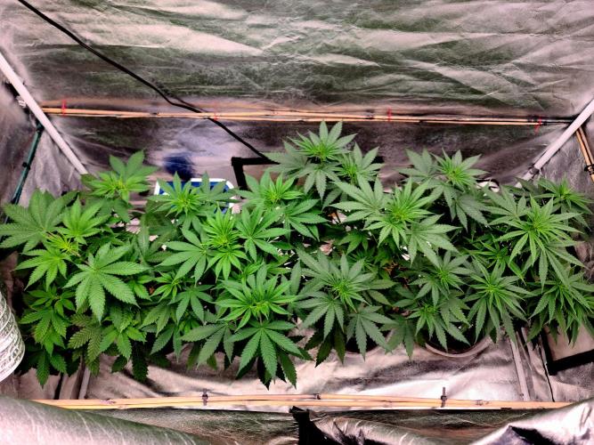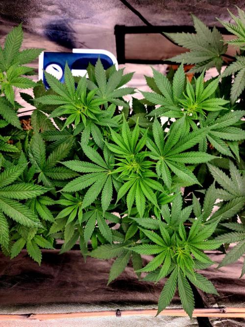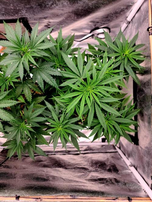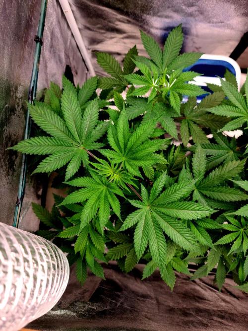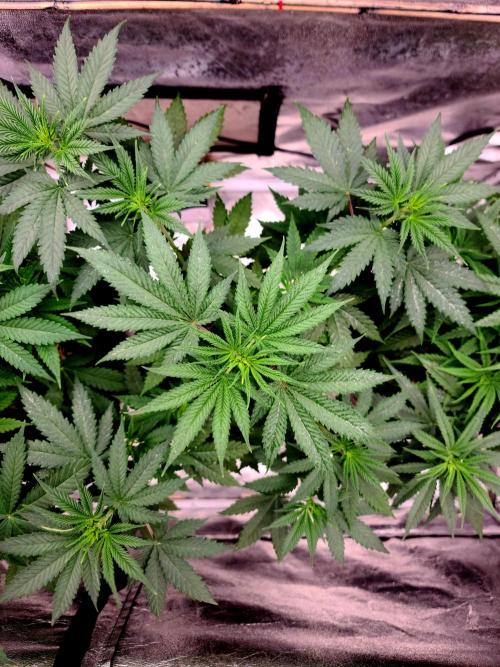 Osirisgreens The ladies are coming along nicely, will be flipping into flower in a week. I've done some deleafing on big fan leaves and saved some big leaves to roll a cannagar later and use the leaves to wrap it