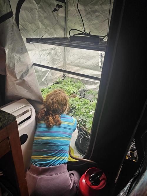Plants were looking very bushy, especially Gelato Og, so they were heavily defoilated and stretched out with LST wires.