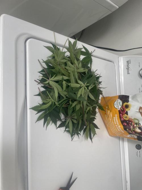 I did a massive defoliation today October the 11th. I really wish I took photos of the plant before doing it but I did get a photo of all the leaves that were removed.