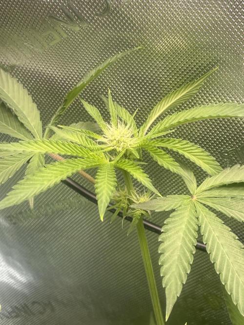 Growing very nicely along with number 3. Larger leaves and shorter height. Going to start training it here in the next week. Going to trim the lower leaves to motivate it upwards