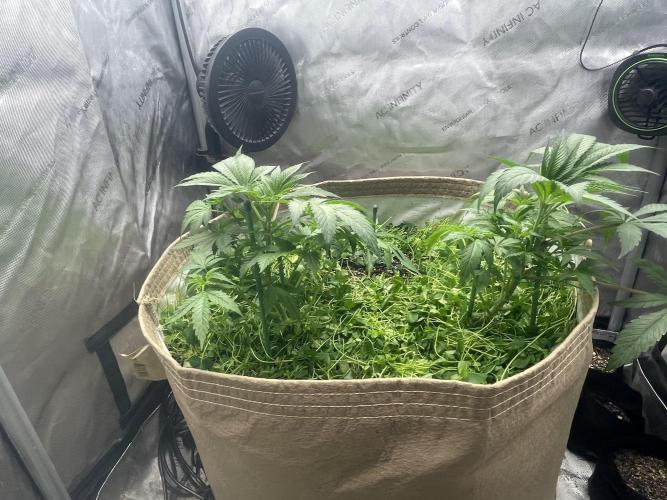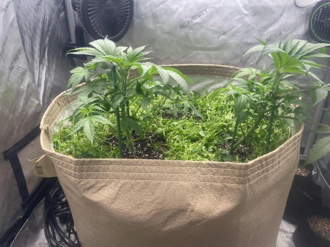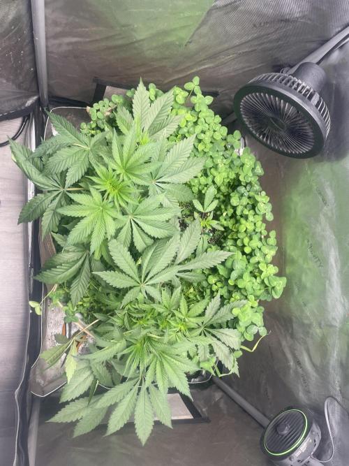 Haven’t given tea or anything to either 3. Going to start training 2 and 3 this week. Also considering giving it their first tea. White clover continues to grow very well. Going to chop directly before switch to give some nitrogen for stretch.