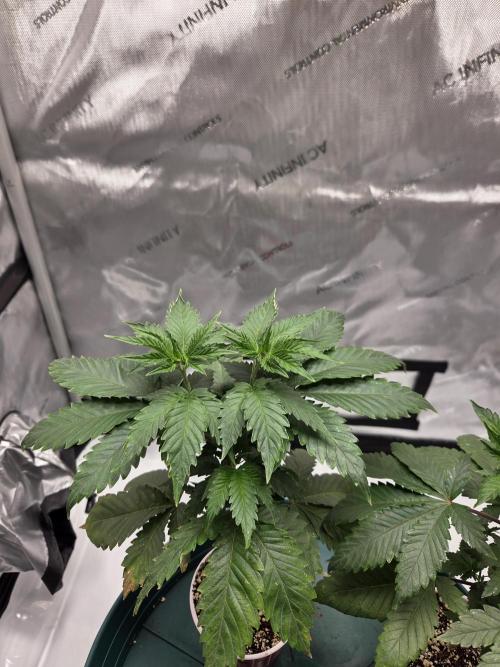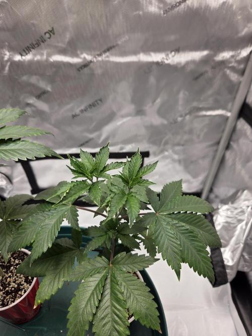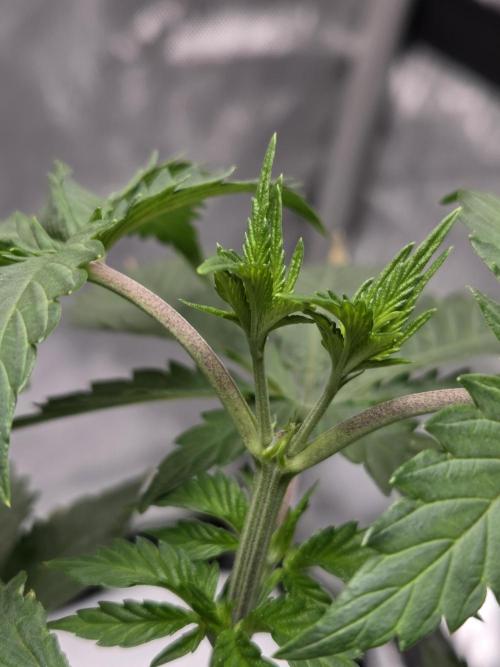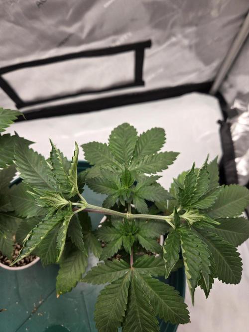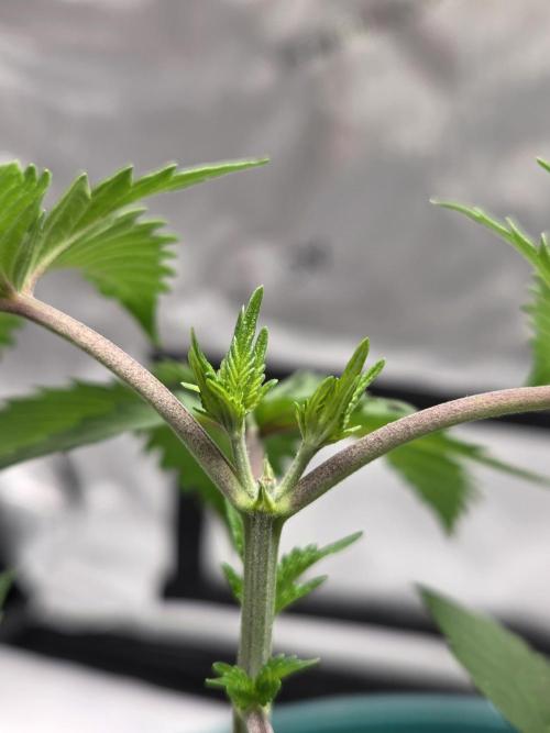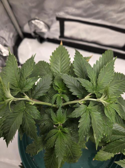 ao_grows1978 Week 5 of vegging has come to an end. The girls are drinking daily and the new tops are developing nicely. I've been stressing the tops a bit, bending them down to let light hit the next set of nodes. The light is now at 24" and at 60 %. I'll be adjusting the intensity and height to keep dli relative. I've also been gradually decreasing light time over the course of 6 days and are currently at 14 hours. The next week will be transition to flower, giving me approximately 9 weeks to finish. Stay tuned.