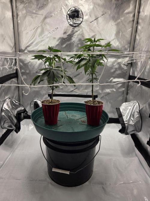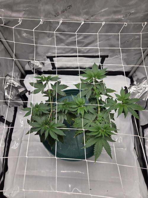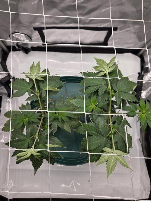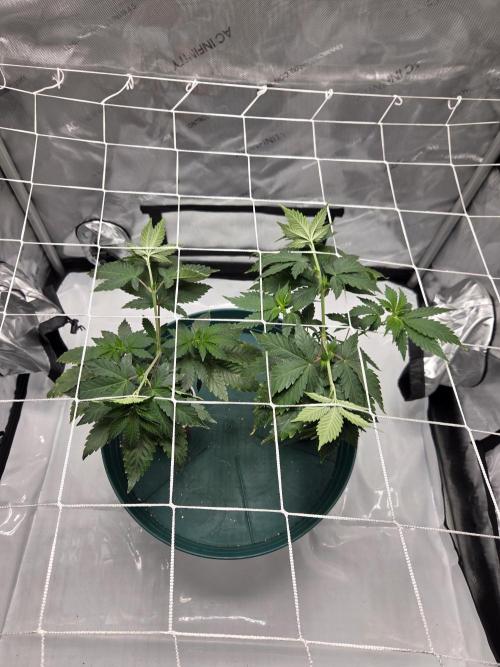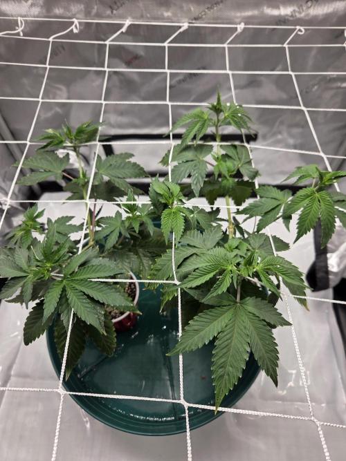 ao_grows1978 I'm considering this past week another veg week. No pistils yet, so the lights have been reduced to 13/11, raised to 30" and intensity is at 100%. I decided to set a trellis up to scrog the solos during stretch, rather than trying to grow them taller.
