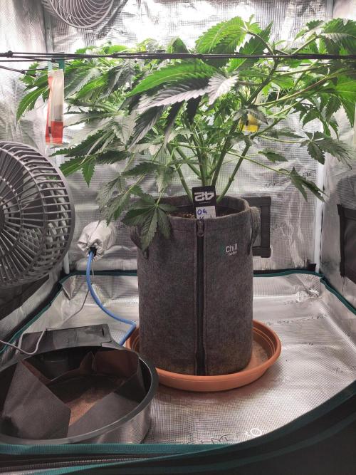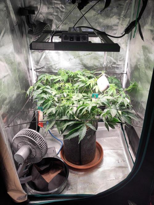 Die Kleine wächst langsam vor sich hin. In der letzten Woche habe ich die Düngung langsam auf das volle Düngeschema gesteigert. Ich denke ich werde die Pflanze im Laufe der Woche das erste Mal Toppen und langsam in Richtung Mainlining traininen. Schauen wir Mal wie weit ich komme bevor das Flower Zelt leer ist und die kleine umziehen wird.