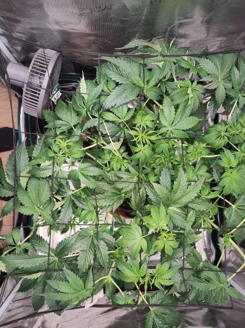 Letzte Woche wurde die OG Kush geköpft, Teils um sie etwas auszubremsen bis ihre Vorgängerinnen Platz im Zelt machen, Teils um weiter Richtung Mainlining zu experimentieren. Mal schauen was ich mit ihr machen wenn ich sie im Endtopf habe. Ansonsten geht es ihr mMn soweit gut und die Blätter sehen für meine Anfängeraugen gesund aus.