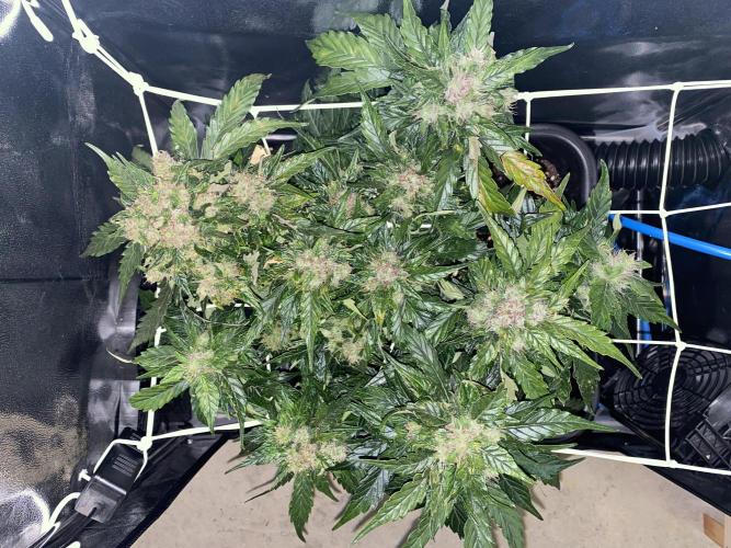 Das wichtigste sind mir ja aber die Blüten, die sind bereits so extrem harzig das ich neulich beim leichten einfädeln der Triebe im SCrOG Netz danach erstmal 5 Minuten die Finger schrubben musste. Riecht inzwischen auch sehr stark. Ab jetzt arbeite ich dann nur noch mit Handschuhen an der Pflanze.