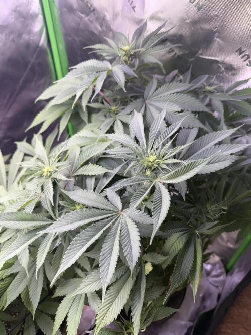 FarmerRasa Lots of bud growth this week. She is looking good and healthy. No issues or deficiency. Humidity is under control and defoliation keeps them from getting to moist and risking mold. Smelling good and looking even better. No herm issues and pretty resilient to a few days that I was lazy with water. A nice recovery after the crappy issues with germination.