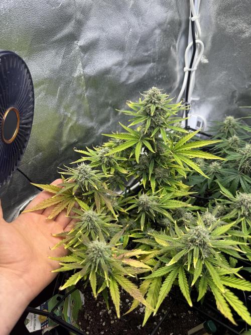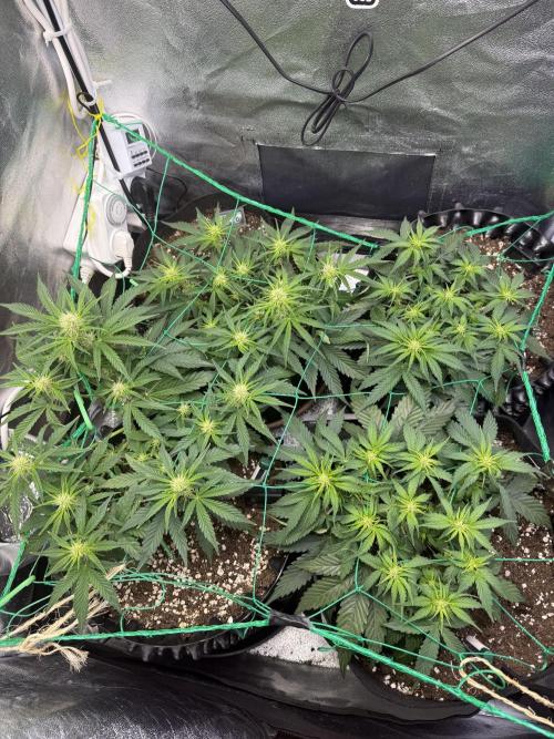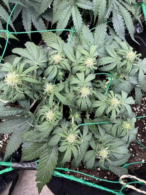 Bowser45 They started flowering quite early despite the air pots. Anyways i kept Training them by moving the branches away so that all budsites get good light ( as much as it was possible) . I also used the scrog net for that.they probably wont be getting much taller . I expected the runtz f1 to be this way but the Apple Fritters alsostayed on the smaller side but you can clearly see that they streched more and have longer strechier budsites.