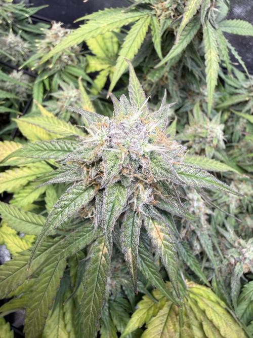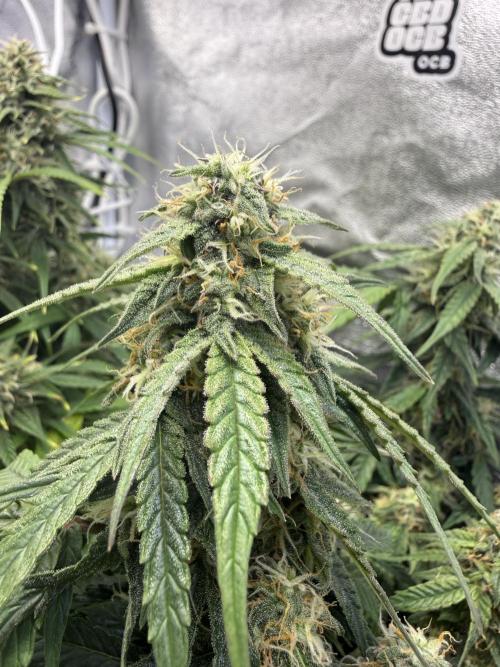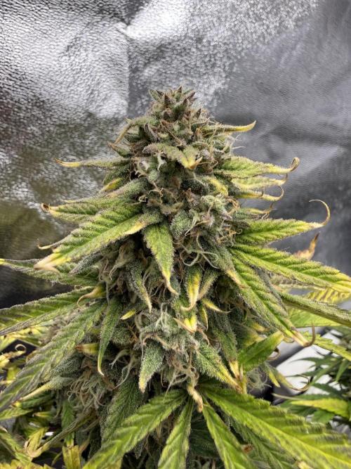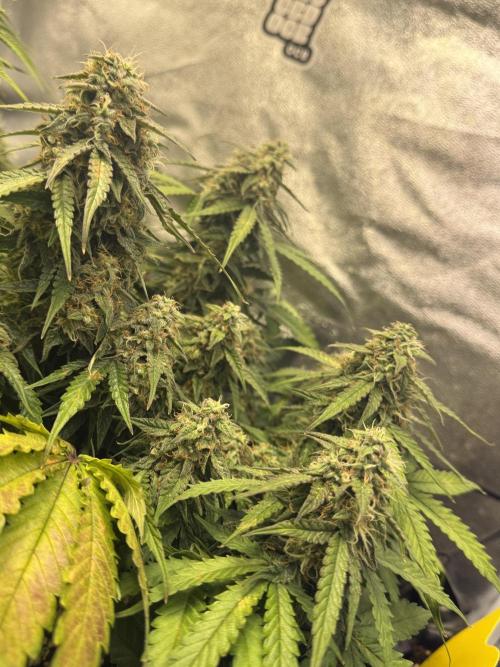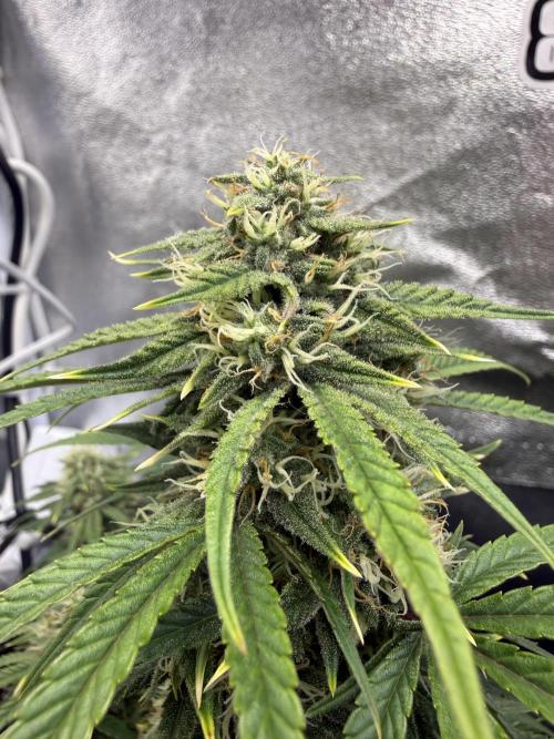 Bowser45 This week they started bulking, they still have alot to go though. they have been getting more thirsty this week since the soil was drying out a day quicker. the one Apple fritter is still yellowing despite the increased amounts of fertilizer so i assume its because it reaches the end of bloom. the Runtz both smell amazing and are starting to get really frosty and purple here and there. They still have around 4 weeks to go , Ill increase fertilizer these last weeks and flush the last. Also the Terps in the tent are amazing , it smells very sweet and fruity like baked apple pie and sour apple notes , also candied lemon in the runtz #1 and candy gas smells are present.