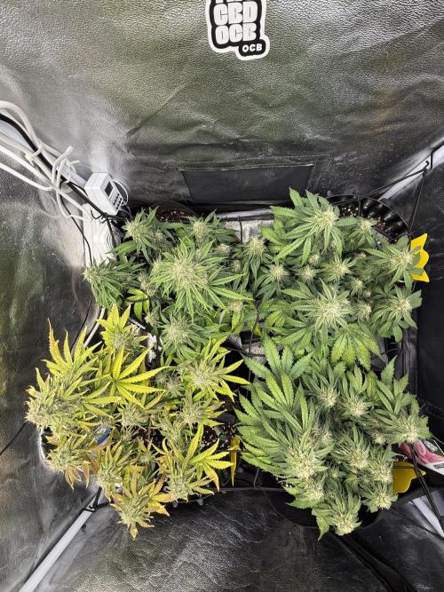 Bowser45 This week went a by a bit slow and i watered too late this week. but i upped the water a bit and they took it well except the yellow apple fritter still turning crispy. but it seems healthy on the other leafes and buds so it might be the genetics or just the plant taking the nuteients from there. The other plants look very healthy and are all bulking up nicely. they also take the water and fertilizer well. The tent is also starting to smell really great with all those different terps. ill still let them go for another 4-5 weeks though