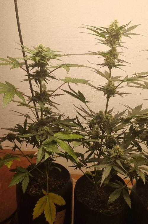 Pechu420 They're growing well, with a beautiful green color in the organic living soil. Ak04 showed its first pistils at 15 days old, very quickly. Soon its sister, 03, will show them too.