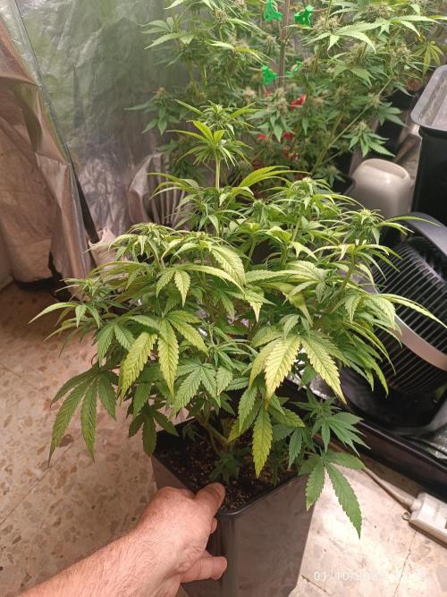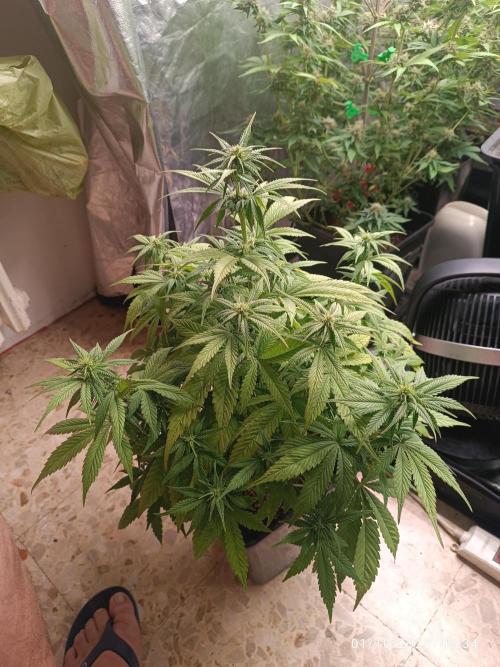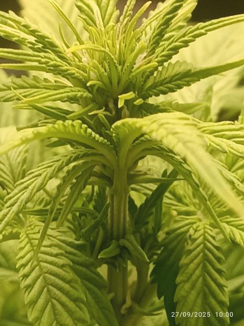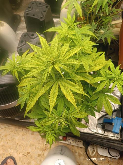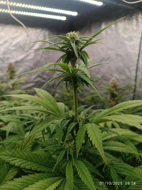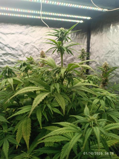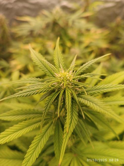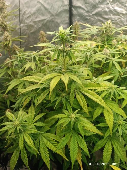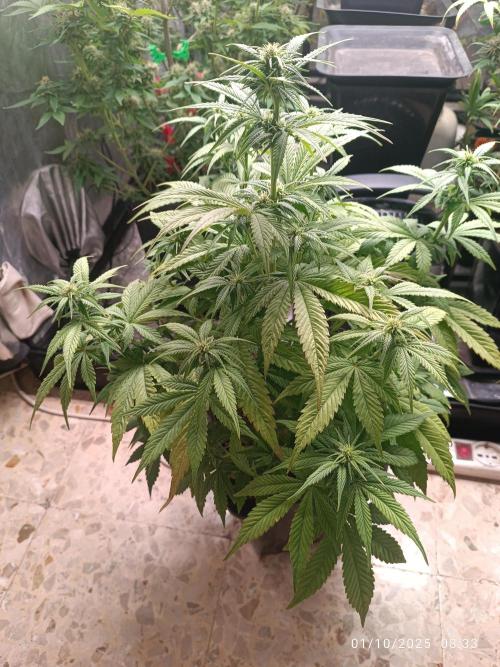 JeyGanesha Questo Frostbanger ha iniziato a fiorire dopo 5 settimane.sta ritardando di una settimana ma in compenso ta crescendo bene forte e si vede anche tanti punti in fiore...sarà piena di fiorelloni spero😉💪🕉️🕉️