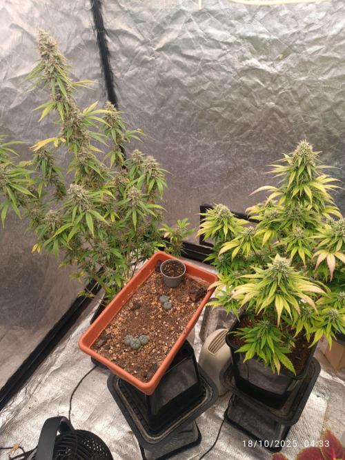 JeyGanesha Questo Frostbanger ha iniziato a fiorire dopo 5 settimane.sta ritardando di una settimana ma in compenso ta crescendo bene forte e si vede anche tanti punti in fiore...sarà piena di fiorelloni spero😉💪🕉️🕉️