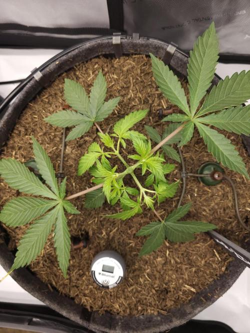By the way, the mulch layer has been fantastic. It makes it so much easier to keep the humidity in the grow tent stable. Plus, it seems to have helped against thrips and fungus gnats, both are gone.