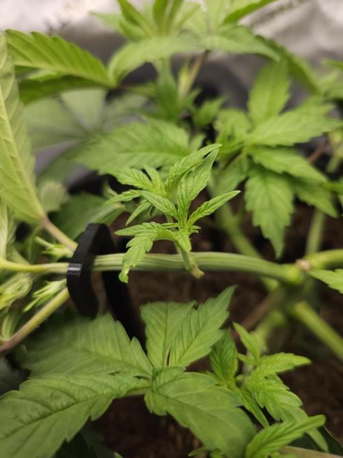 I want to keep the plant more compact this time, so I plan to top her twice, which should be enough. I also started a bit of LST, bending the side branches about twice a day until they’re long enough for my 3D-printed LST sticks.