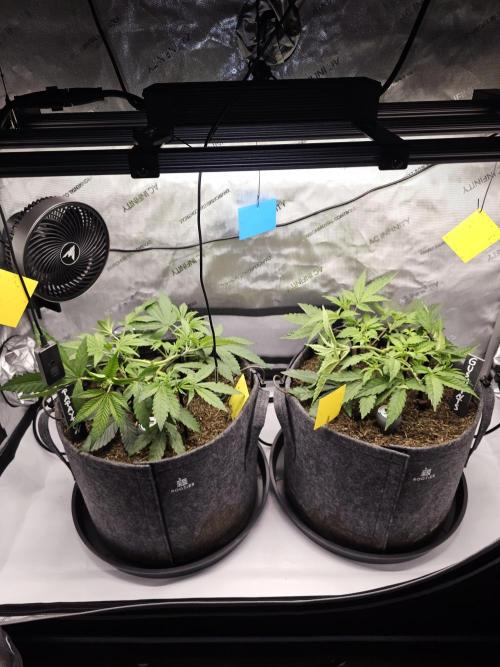 On Tuesday, I’ll defoliate her for the last time during veg. On Wednesday, both plants will be switched to flower, using a 13/11 schedule.