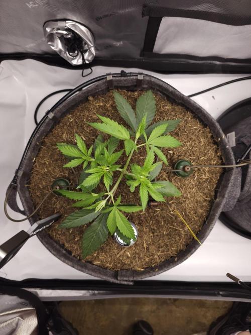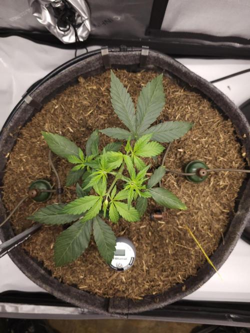 By the way, the mulch layer has been fantastic. It makes it so much easier to keep the humidity in the grow tent stable. Plus, it seems to have helped against thrips and fungus gnats, both are gone.