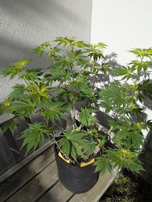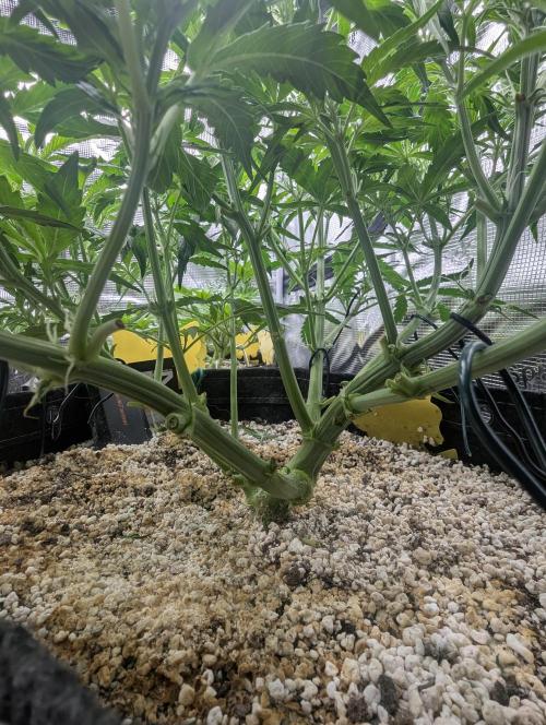 - shes growing really well, so much so, that she required a good amount of defoliation around her base