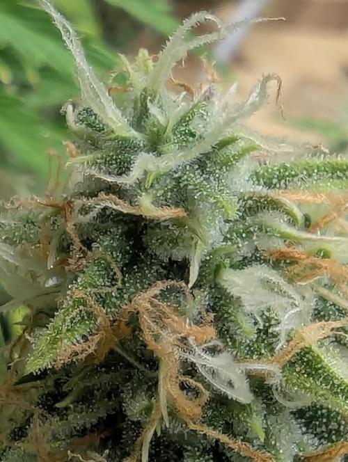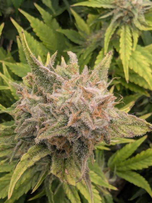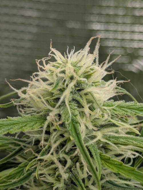 - perfect in every way, big cola, lots of trichomes, nice sweet&sour smell