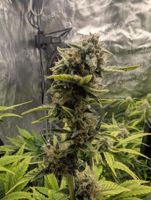 - pistils have started to appear on her stems, this one is about to start her flower phase! She has also started to smell good 😁