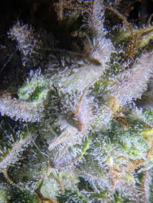 - 98% of her trichomes milky, with the other 2% being either clear or amber.