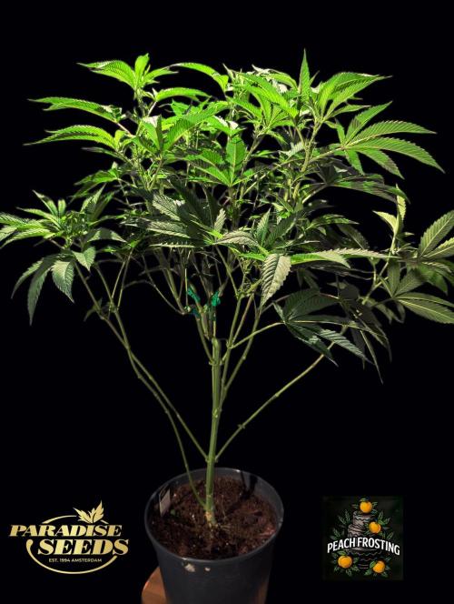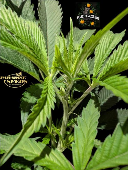 Nach der vierten Woche entwickelt sich die Peach Frosting im Vergleich zu den anderen Pflanzen etwas langsamer, wobei ich die abzeichnunh der Seitentriebe sehr schön finde.