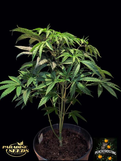 Nach der vierten Woche entwickelt sich die Peach Frosting im Vergleich zu den anderen Pflanzen etwas langsamer, wobei ich die abzeichnunh der Seitentriebe sehr schön finde.