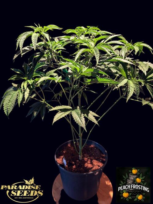 Nach der vierten Woche entwickelt sich die Peach Frosting im Vergleich zu den anderen Pflanzen etwas langsamer, wobei ich die abzeichnunh der Seitentriebe sehr schön finde.