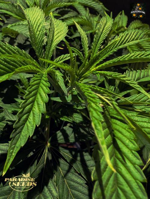 Nach der dritten Woche entwickelt sich die Peach Frosting im Vergleich zu den anderen Pflanzen etwas langsamer und ist in etwa gleich auf mit der GG#4.