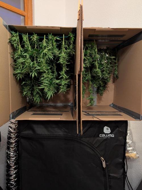 -beide Kush weitestgehend passend für beiden Trocknungs-Boxen zugeschnitten & aufgehängt