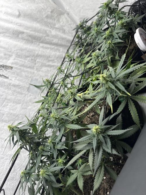 XanHalen Oct 7th Still looking good, some leaf tip burn on one girl and fade from the bottom of another, nothing I’m going to immediately address, I gotta learn to leave well-enough alone sometimes… Flowers forming nicely, would have liked another week of veg but let’s see what happens! Oct 12th Found some more aphids, wiped all affected leaves and more with 35% isopropyl alcohol solution, misted undersides with neem solution (5ml neem extract + 5 drops non-concentrated Dawn dish soap per 1L). Stacking and stretching well, I wanted some nice short and stocky autos and that’s what we got lmao. Peep profile and check out the Mango Runtz seedlings from Mephisto I got🧐😮‍💨