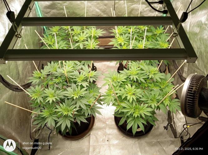 biggerbud420 been doing some lst keeping the plants the same height , I gave 1 tsp of cal mag per gallon of water