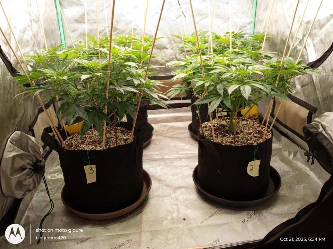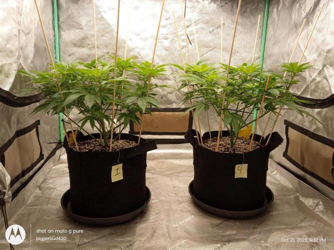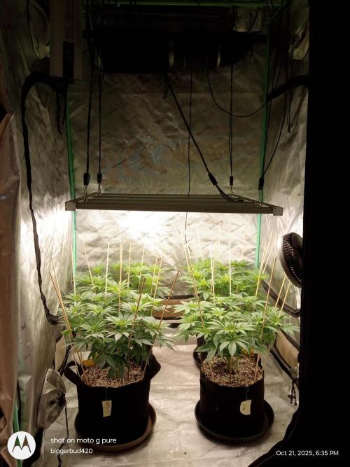 biggerbud420 I transplanted to 5 gallon pots on 9/23 , I will top in a few days