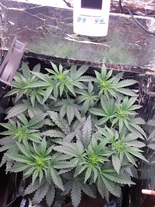 She stretches a little and now looks more like an 80% indica and 20% sativa hybrid from the growth shape,