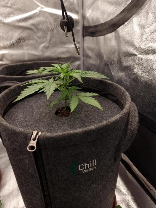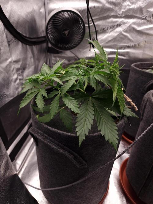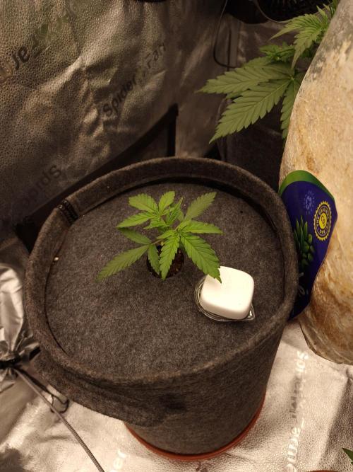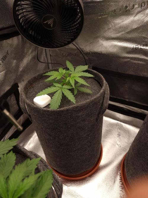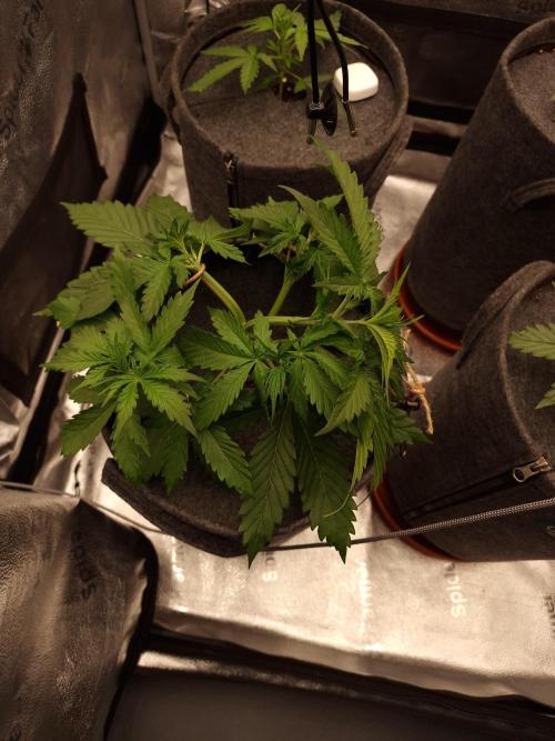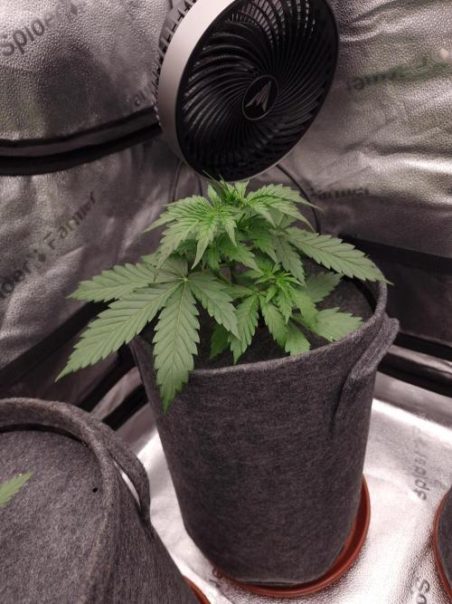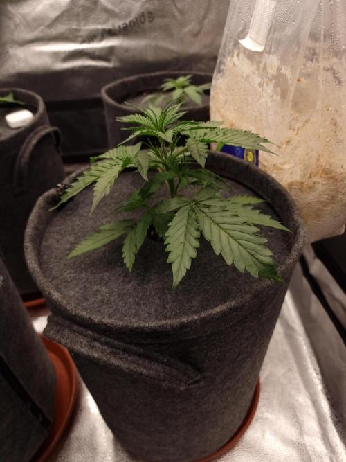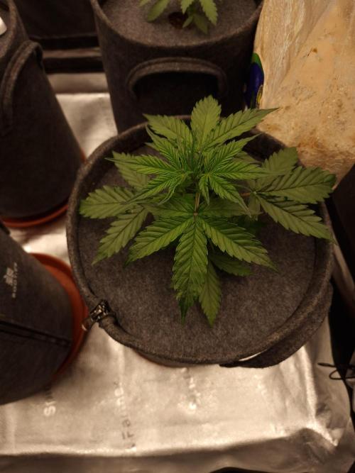 On Day 4 transplanted into 15 L fabric pots with a mix of 50% Biobizz Light Mix, 20% coco, 20% worm humus, 10% perlite.