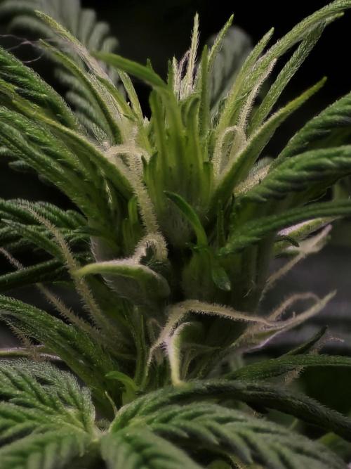She shot up quite a bit this week, and it’s safe to say we’ve officially entered the flowering stage. Pistils are shooting out from every bud site, and she’s starting to stack nicely.