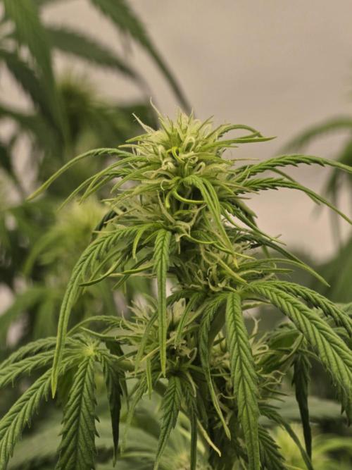 She’s such a big girl! Her structure looks great, and she’s stacking nicely for week two of flower. The bud sites are filling out well, and everything’s looking strong and healthy.