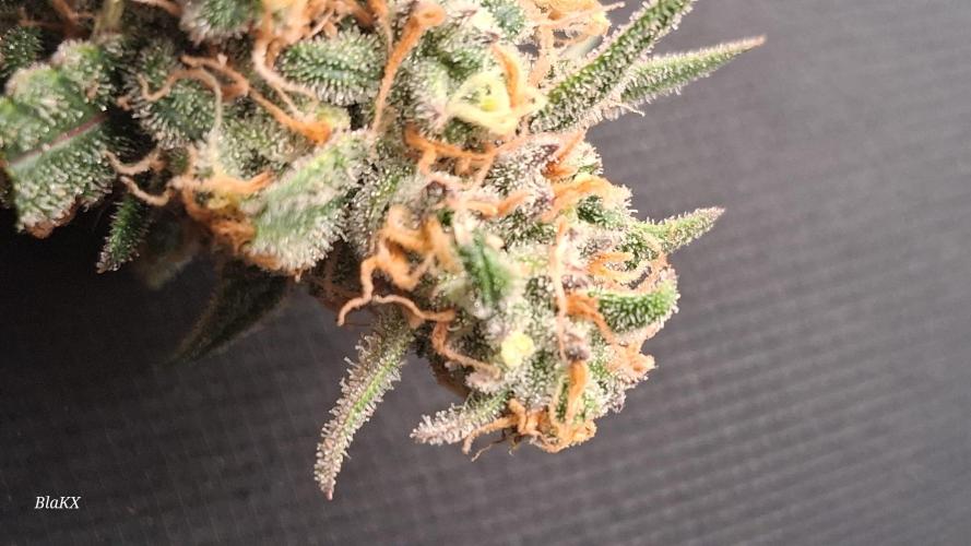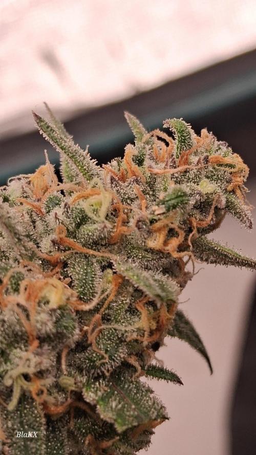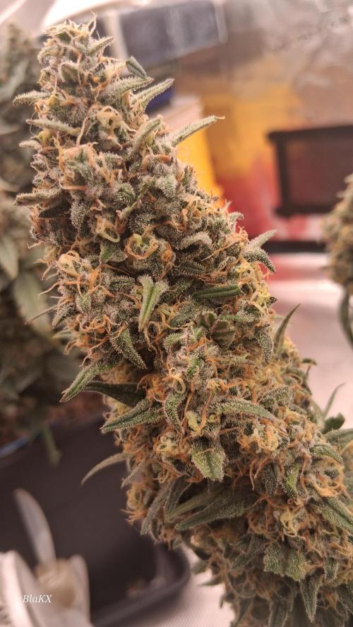In den angegebenen Zeit von 8-9 Wochen fertig geworden und auch die Farbe der Buds und Orange Leuchten Pistillen sind wie in der Sorten Beschreibung. Der Massive Harz bessatz kombiniert mit den starken Terpenen aus Sauer Zitrone, Diesel funk aroma das ins fruchtig Marmeladen Cookies/Gelato dessert note endet .