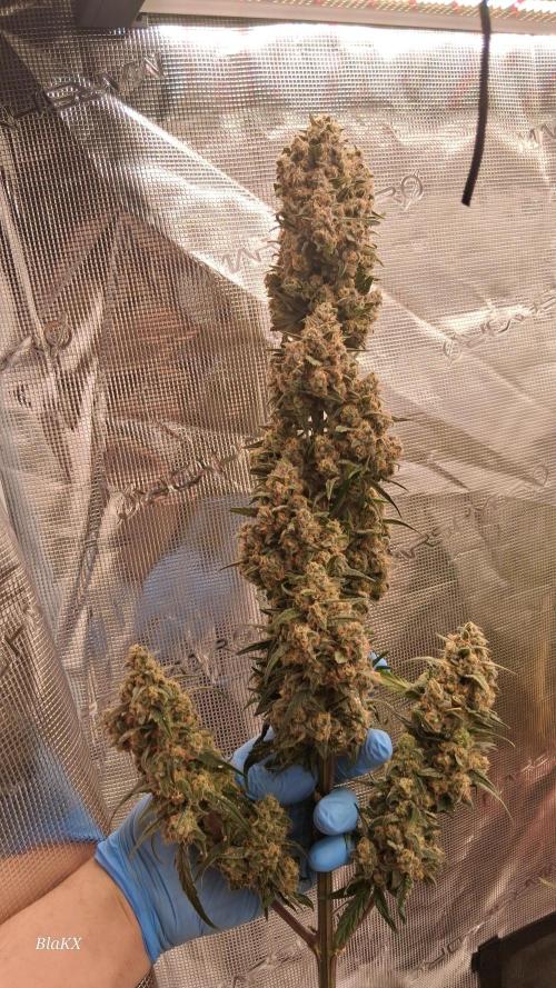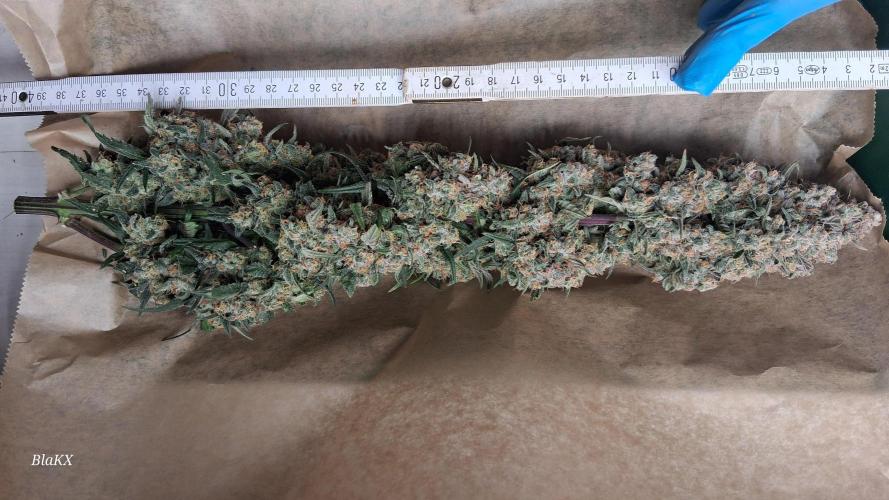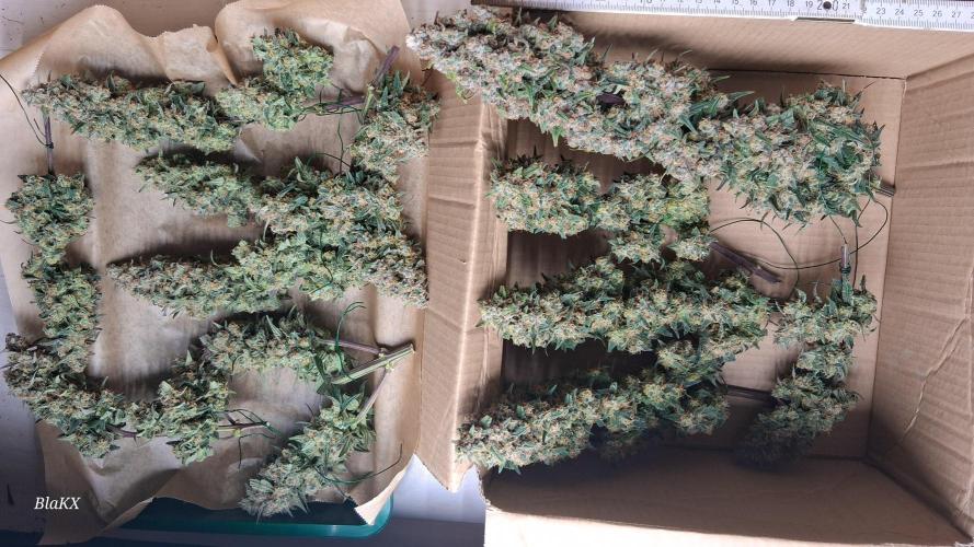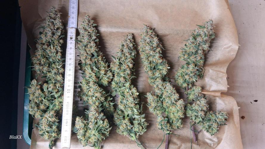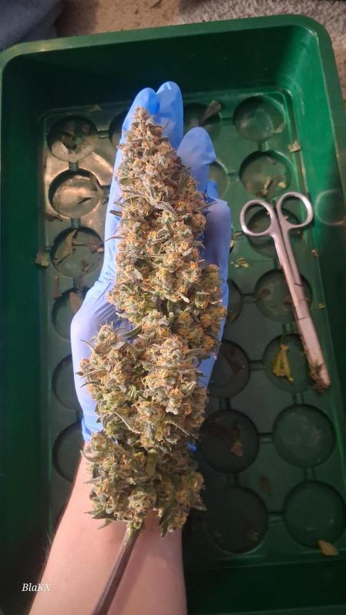BlaKX Die Ernte war relativ einfach da sie wenig Blätter ausgebildet hat und mehr Blüten Masse!