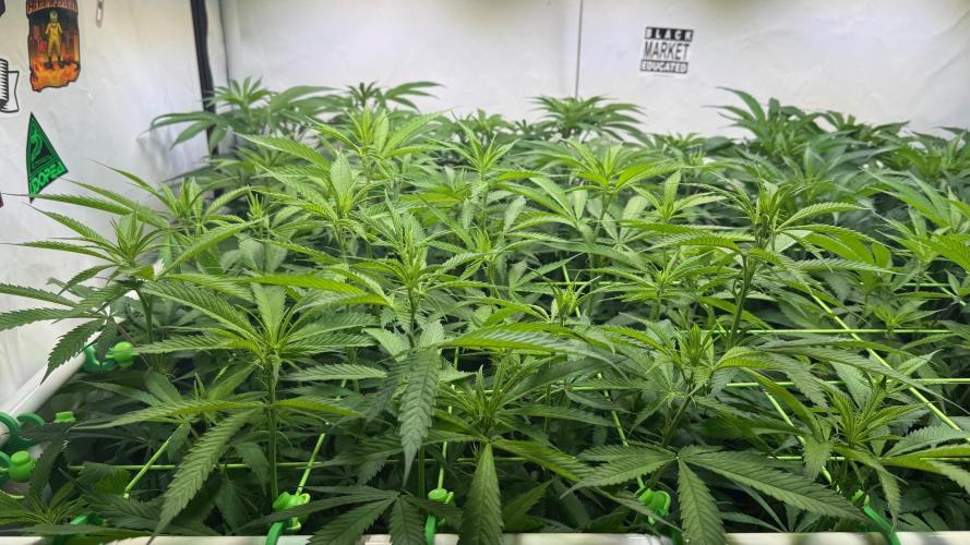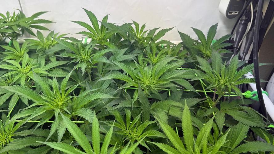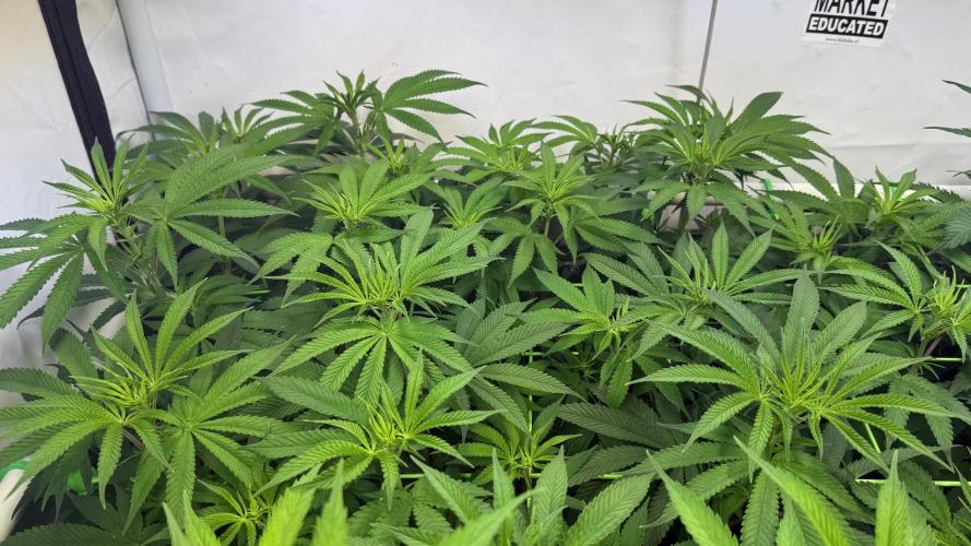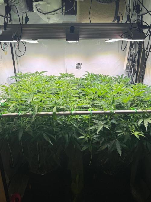 Ein durschnittlicher PPFD von 500 bei einem VPD zwischen 0,8 - 1,2 je nach Tageszeit und wässern. Der Luftentfeuchter ist auf 55% eingestellt und der Prima Klime 800m³/h exaust Fan auf 26 Celsius die selten erreicht werden und der Entlüfter so auf ca. 25 % Leistung läuft. Es sind auch 2 Clipfans an den mit der dichte wird ein guter airflow jetzt immer wichtiger.