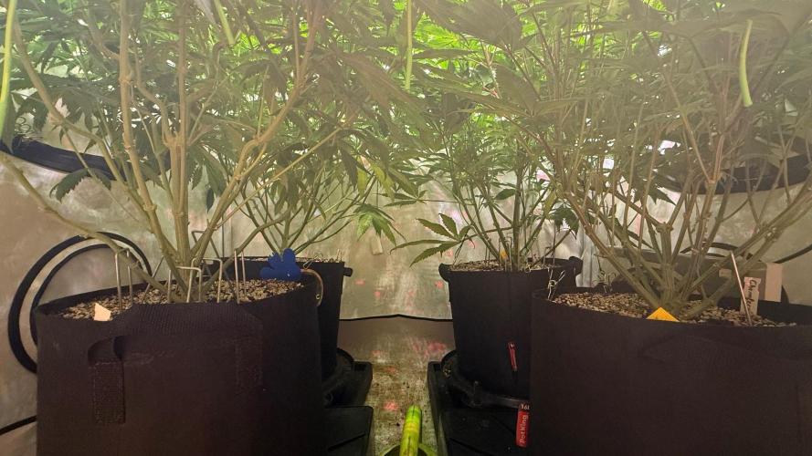 Eine wird in dem dann freien 40x40x120 Veg. Zelt in einem 8 Liter Stofftopf sehr früh in Blüte geschickt und mineralisch mit Canna Terra ernährt.