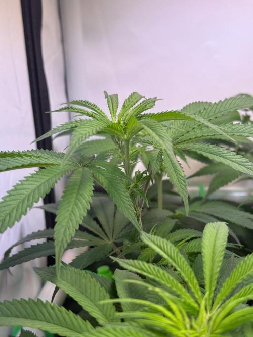 Die Blue Razzsicle hat anstatt der 3 Finger Blätter wieder 1 Finger Blatt ausgebildet was erklärt das diese Mutation sie ein wenig ausgebremst hat. Auch wenn ich sie vieleicht aussortieren muss oder vieleicht wird sie im kleinen 40 x 40 bleiben und da in Blüte gehen. Eigentlich hatte ich vor die Chemferno die einen kleineren stretch haben sollte geplant im kleinen Zelt zu beenden.