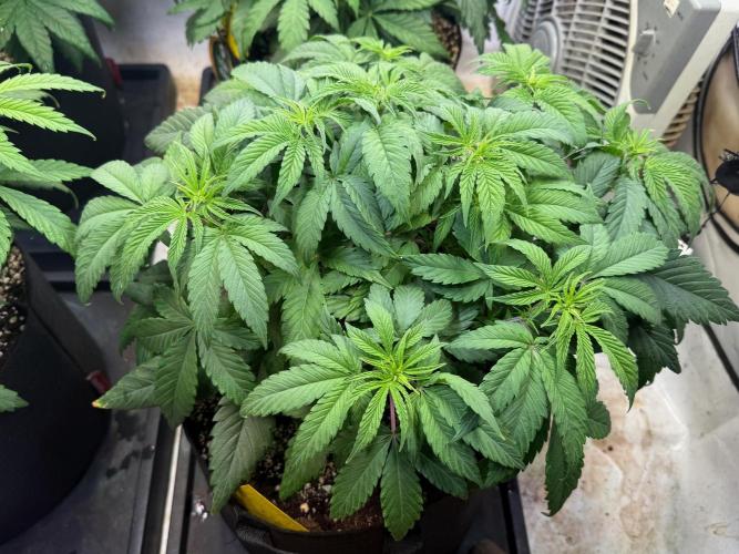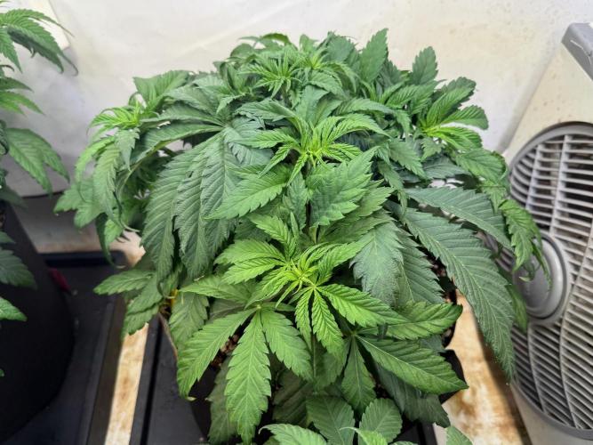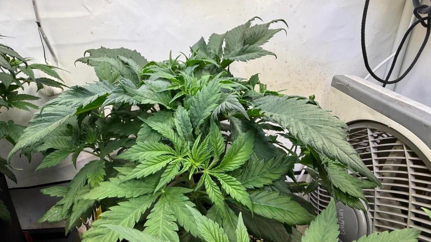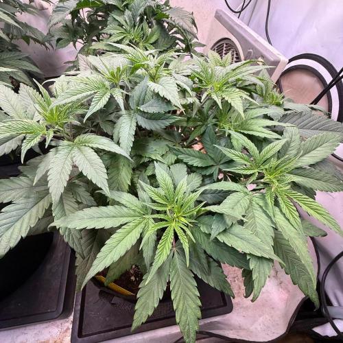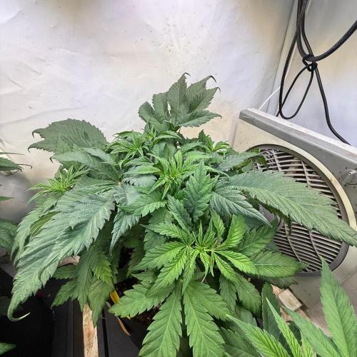 Die Blue Razzsicle hat die anfängliche Mutation (3 Finger Blätter hatten wieder nur einen breiten Finger) überwunden und kann mit den anderen trotz dieser Mutation gut mithalten. Hat sie also kaum ausgebremst. Warscheinlich wird sie der Kandidat für das kleine 40x40x120 Zelt und in 2 Wochen in Blüte geschickt.