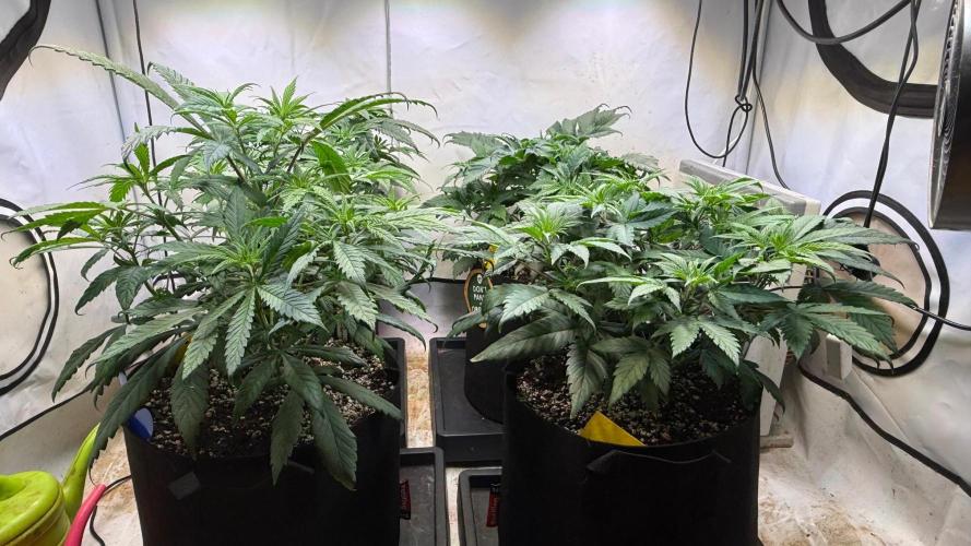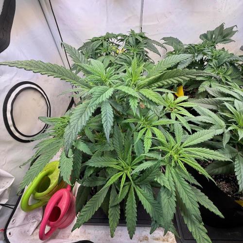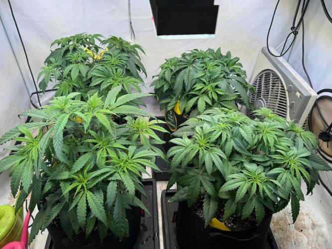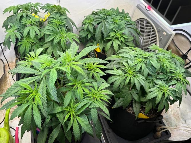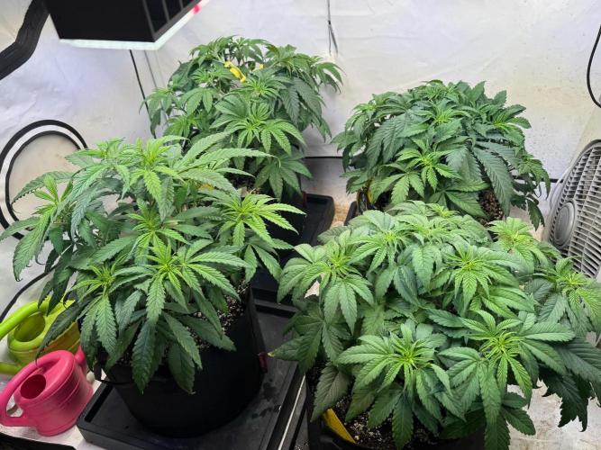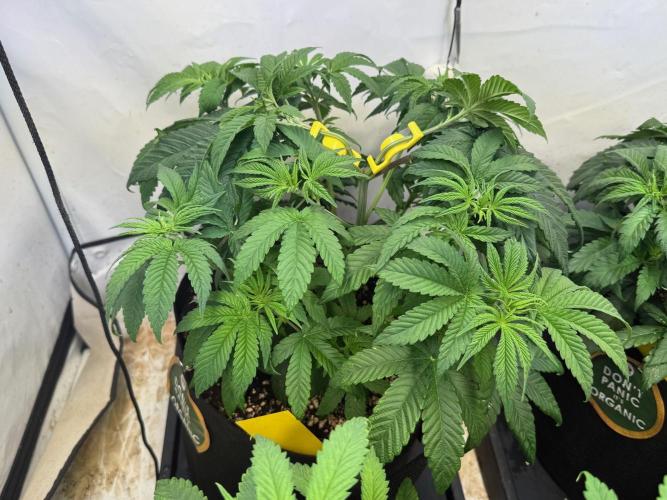Zum Glück haben sie diese Stressige Phase hinter sich gelassen und wachsen kräftig und Gesund so wie man es gewohnt ist. Im laufe der Woche kamen hier und da Budclips zum einsatz um die Pflanzen zu öffnen wobei die Chemferno und Red Hot Violet gar kein trainig brauchen. Was bei allen gemacht habe ist die großen Blätter unter Seitertriebe zu klemmen die sie verdecken. Das sieht nicht so schön aus wie die natürliche symetrische Form aber was zählt sind am Ende kräftige Seitenäste die viel Licht bekommen stark sind und große Buds tragen Können. Mit dem gießen halte ich mich ein wenig auf der geizigeren seite damit die Wurzeln auf Suche gehen und den Topf durchwachsen.