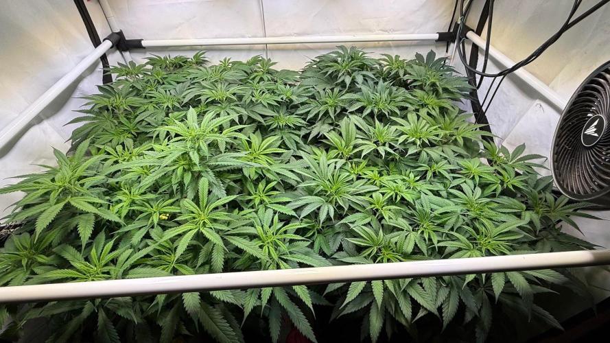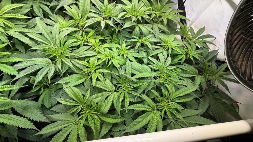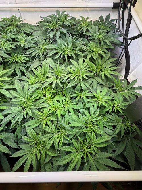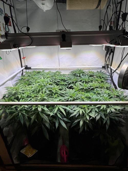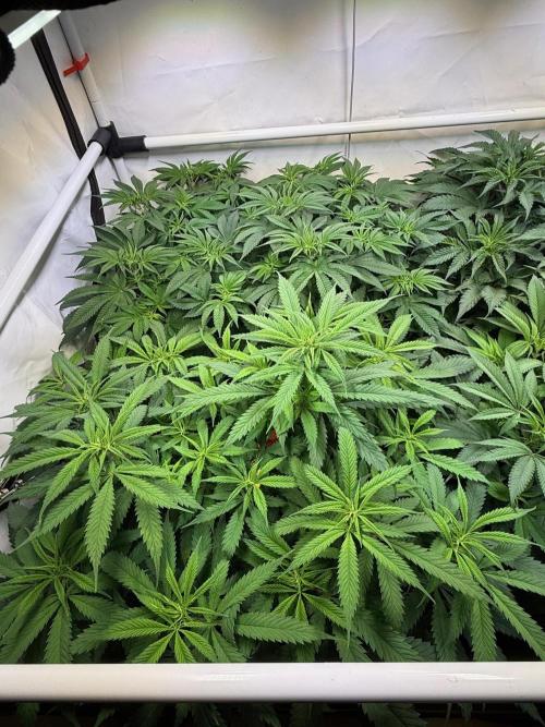 Ein durschnittlicher PPFD von 500 bei einem VPD zwischen 0,8 - 1,2 je nach Tageszeit und wässern. Der Luftentfeuchter ist auf 55% eingestellt und der Prima Klime 800m³/h exaust Fan auf 26 Celsius die selten erreicht werden und der Entlüfter so auf ca. 25 % Leistung läuft. Es sind auch 2 Clipfans an den mit der dichte wird ein guter airflow jetzt immer wichtiger.