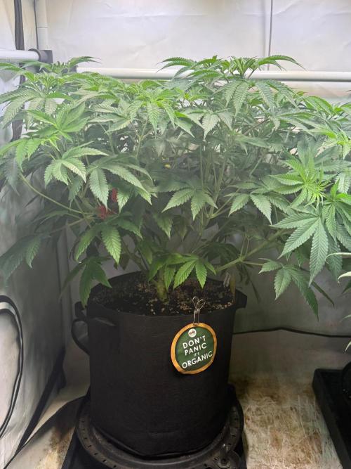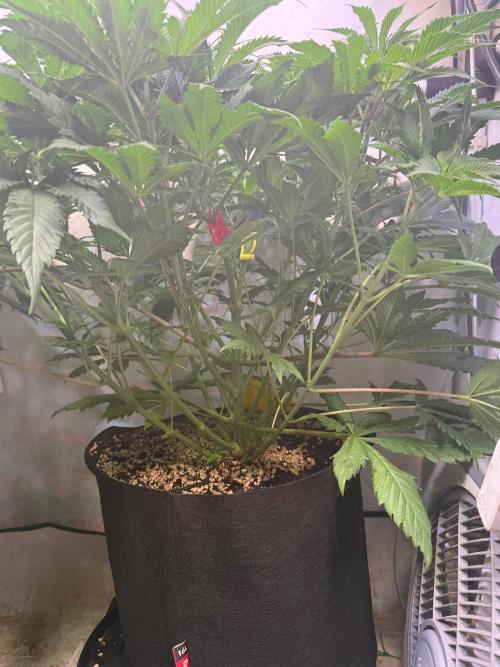 Eine wird in dem dann freien 40x40x120 Veg. Zelt in einem 8 Liter Stofftopf sehr früh in Blüte geschickt und mineralisch mit Canna Terra ernährt.